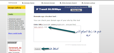 بعد الدخول قم بوضع رابط الموقع الذي تريد معرفة عمره ، وكما سوف تشاهد سوف